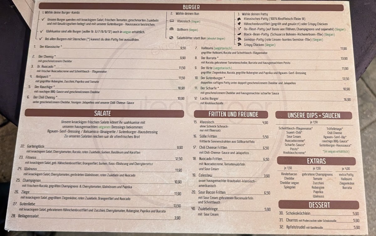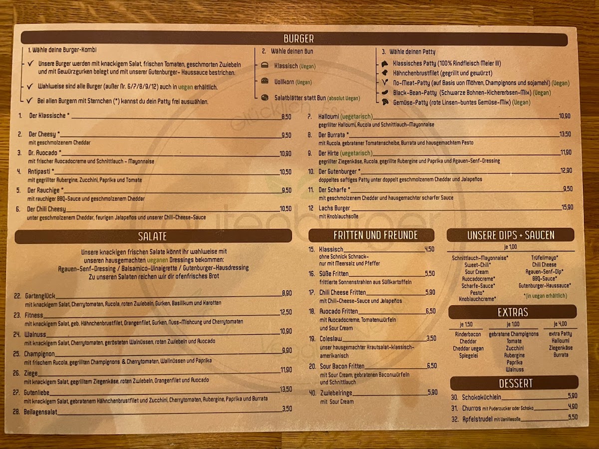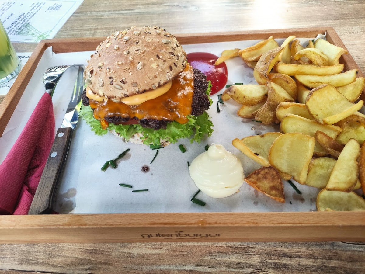 At Cafe Gutenburger, the star of the menu is undoubtedly the burgers. Customers rave about the delicious selection, which includes an array of offerings tailored for both meat-lovers and those seeking plant-based options. The kitchen takes pride in crafting juicy, flavorful burgers, although some have noted that the beef burger can occasionally be a bit dryer than expected. For those who prefer to forgo meat, the cafe's impressive range of vegan and vegetarian options is sure to satisfy.